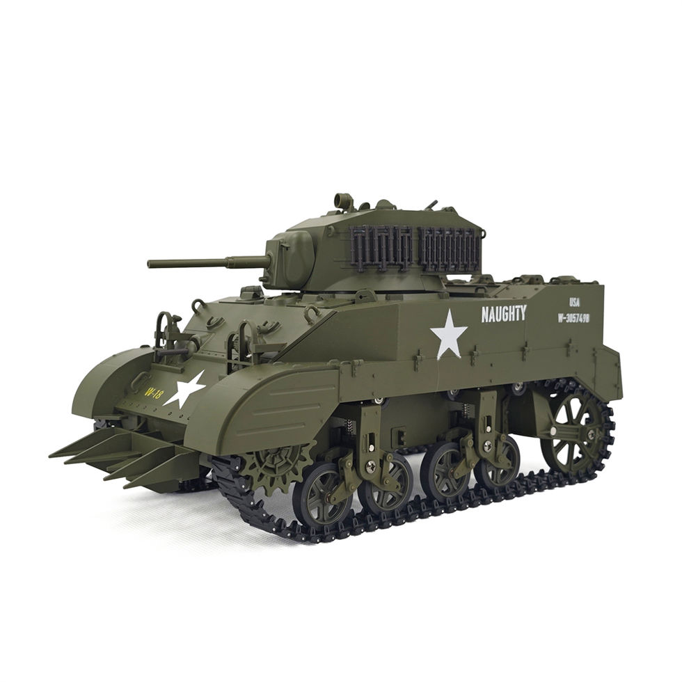 1/16 Scale 2.4Ghz U.S. M5A1 Stuart Light Remote Control Tank with barrel recoil, 360 degrees turret, Marine Camo,realistic suspension system, smoke and realistic sound by Coolbank brand.